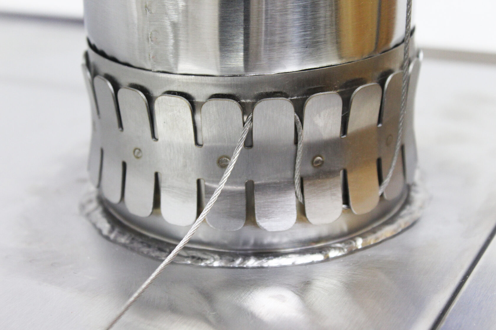 Последний сегмент дымохода имеет в конструкции фиксатор для металлического троса. Он необходим для устойчивости дымохода при порывах ветра.