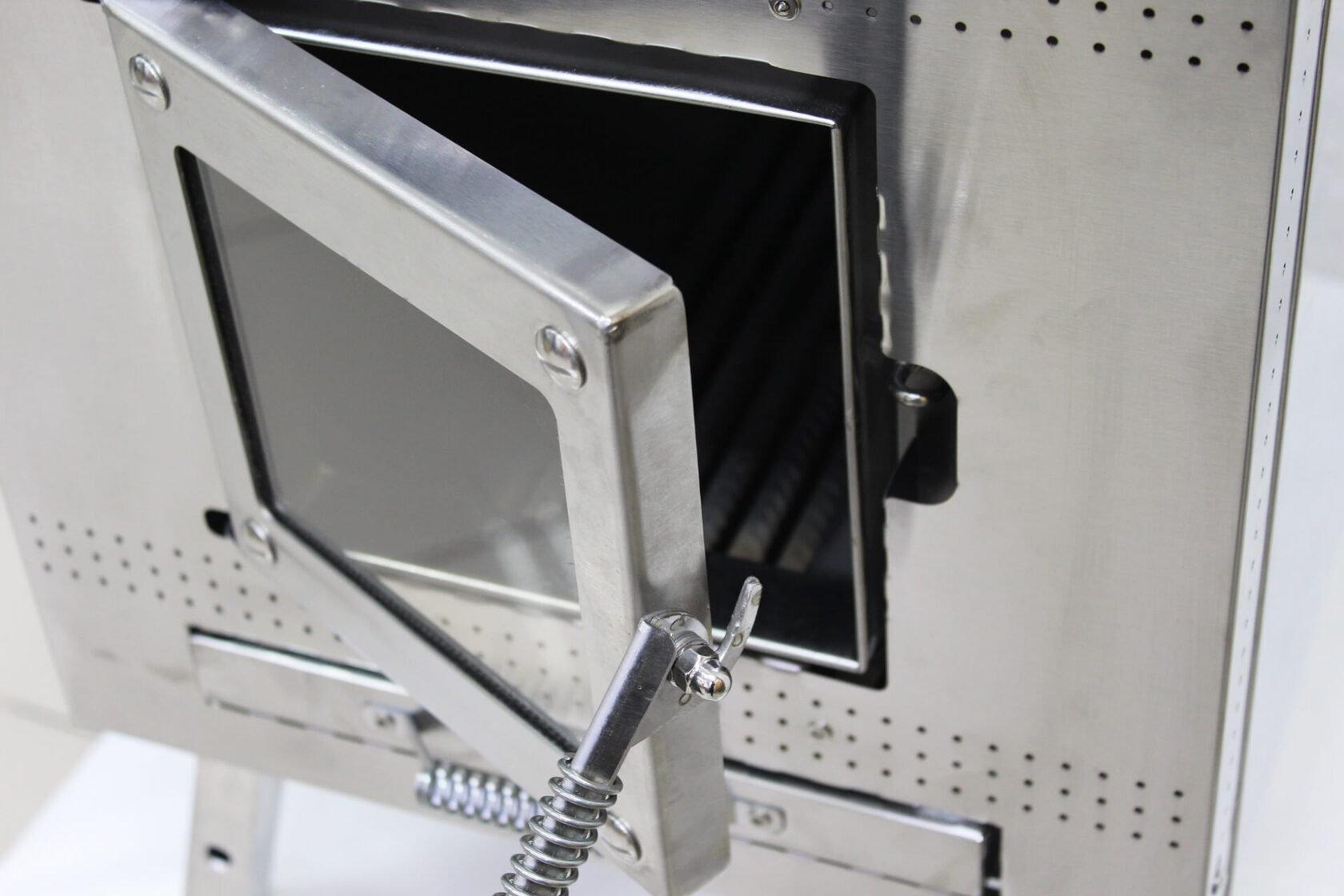 Ручки с пружинами. Если перчаток нет под рукой, вы можете безопасно открыть работающую печь. Ручки дверцы изготовлены из металлической пружины, которая не перегревается.